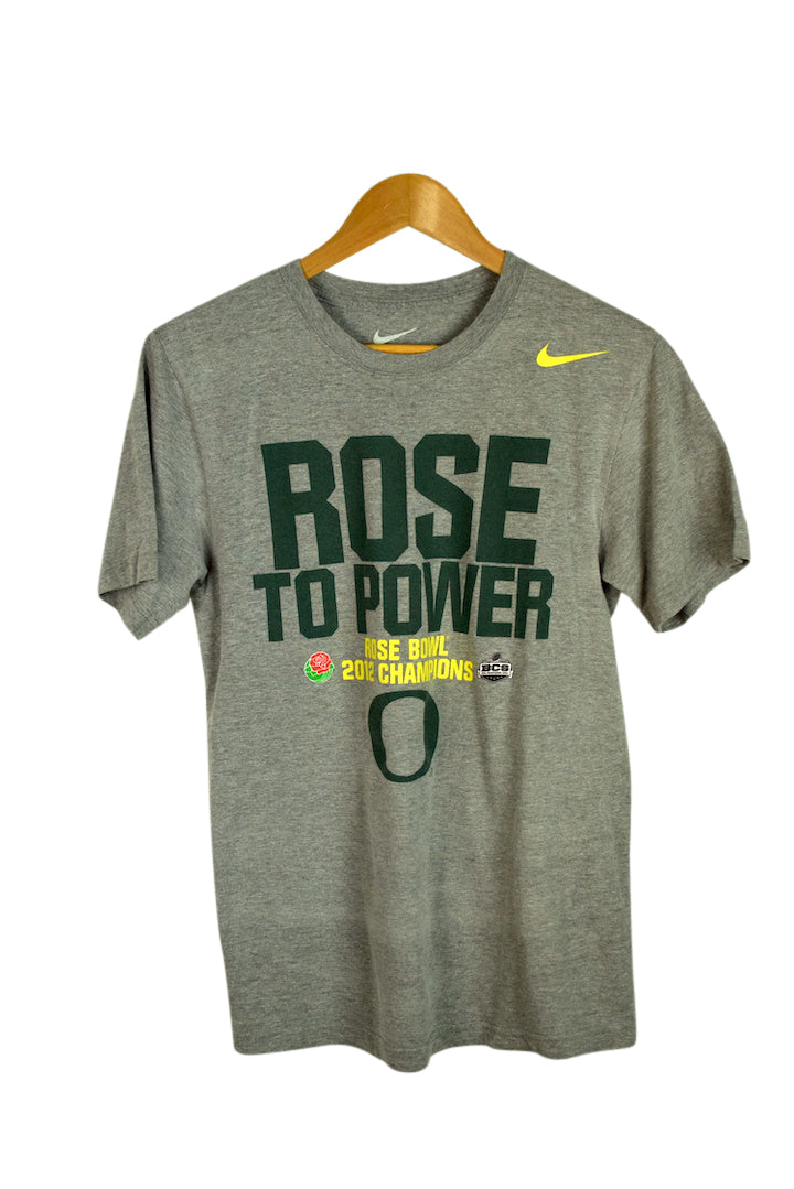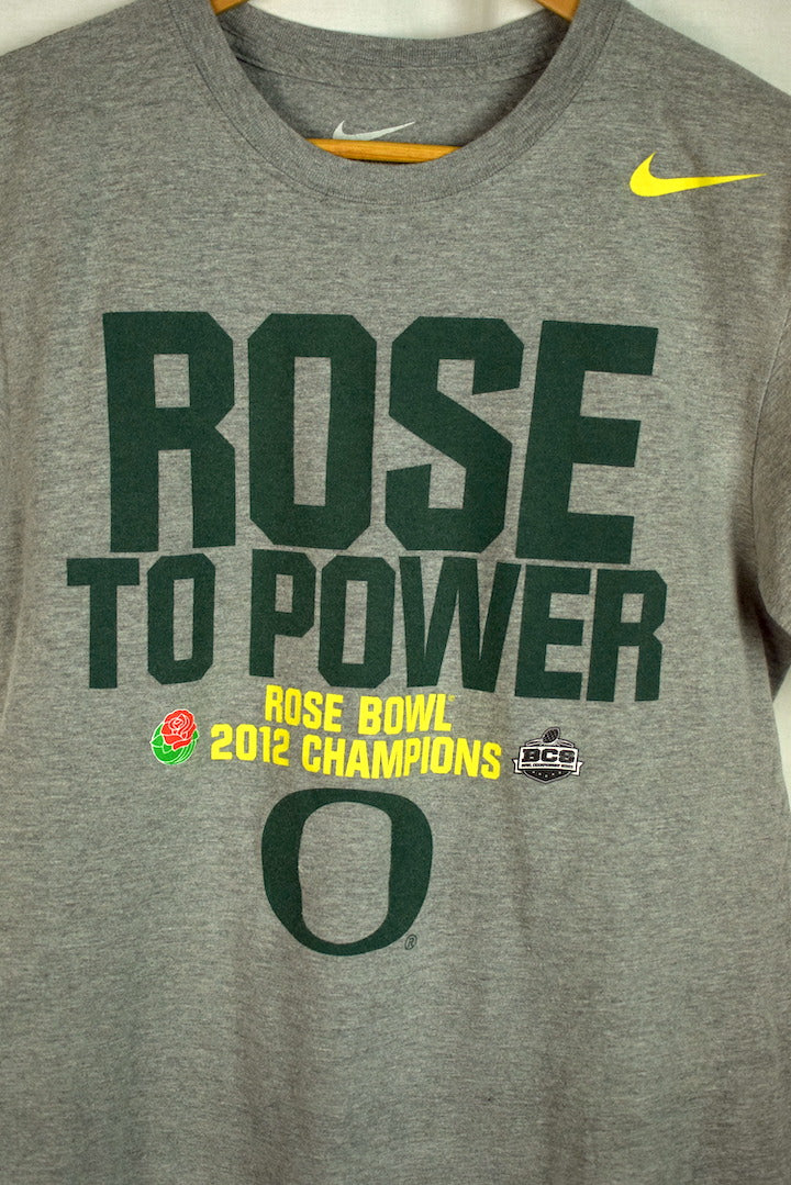 Grey t-shirt with University of Oregan Champions motif to front