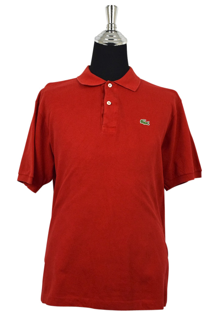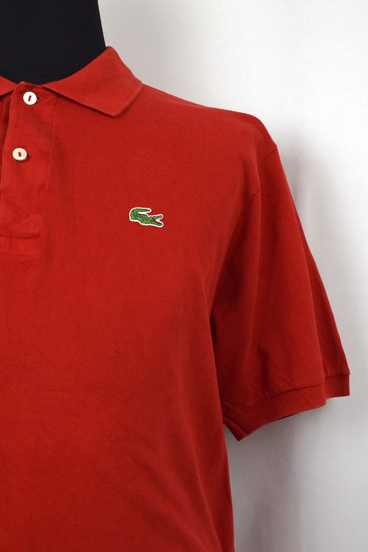 Red 2-button polo shirt with classic Lacoste motif patch to chest