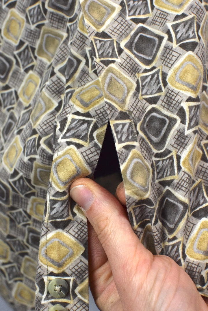 Grey 100% cotton shirt with an abstract diamond print