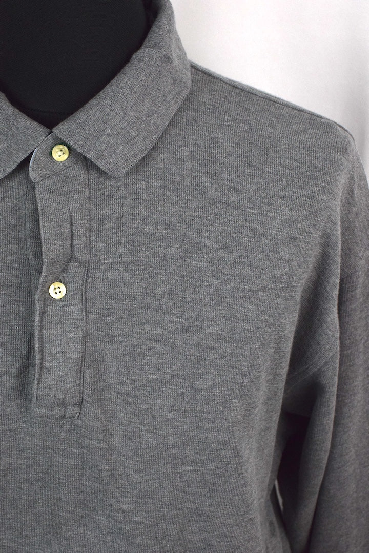 Grey long sleeve polo shirt with a Tommy motif to front