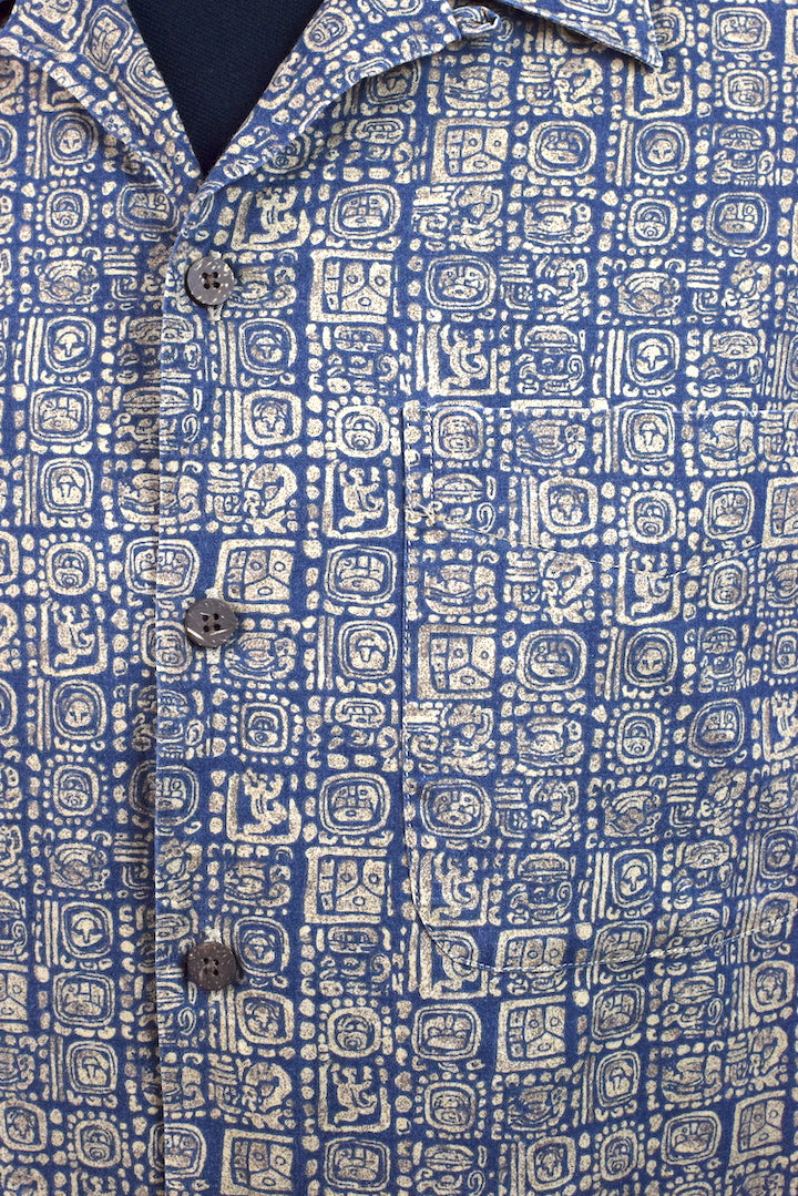 100% Cotton Navy shirt with Tiki tile print