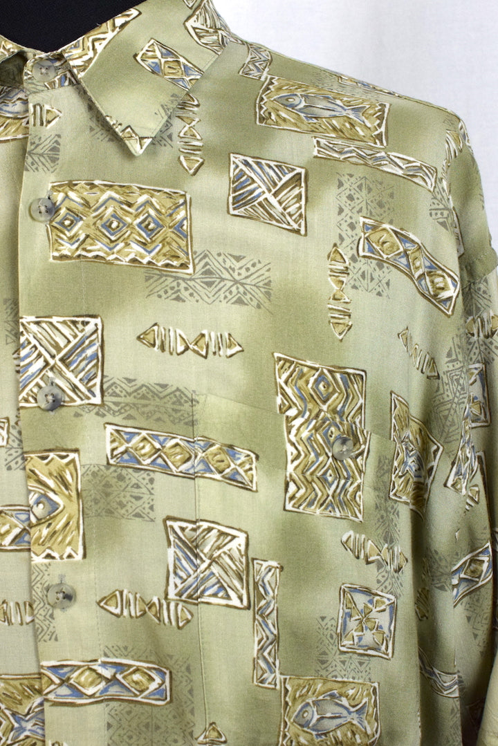 Rayon blend Green shirt with an abstract shape print