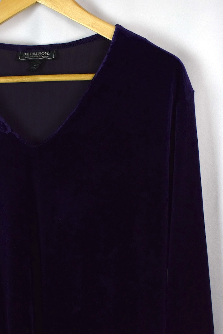 Purple longlseeve velvet top with slits to side (apx. 10cm)