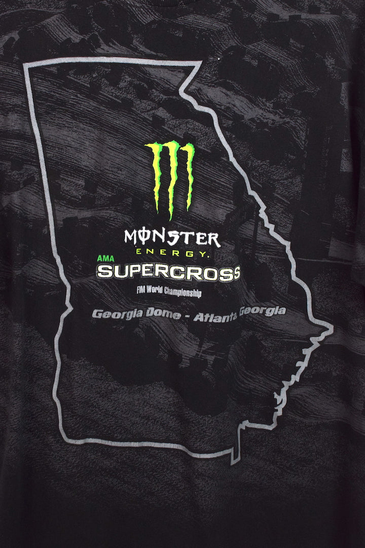 Loved black t-shirt with Monster Energy, Supercross and Georgia state motif to front