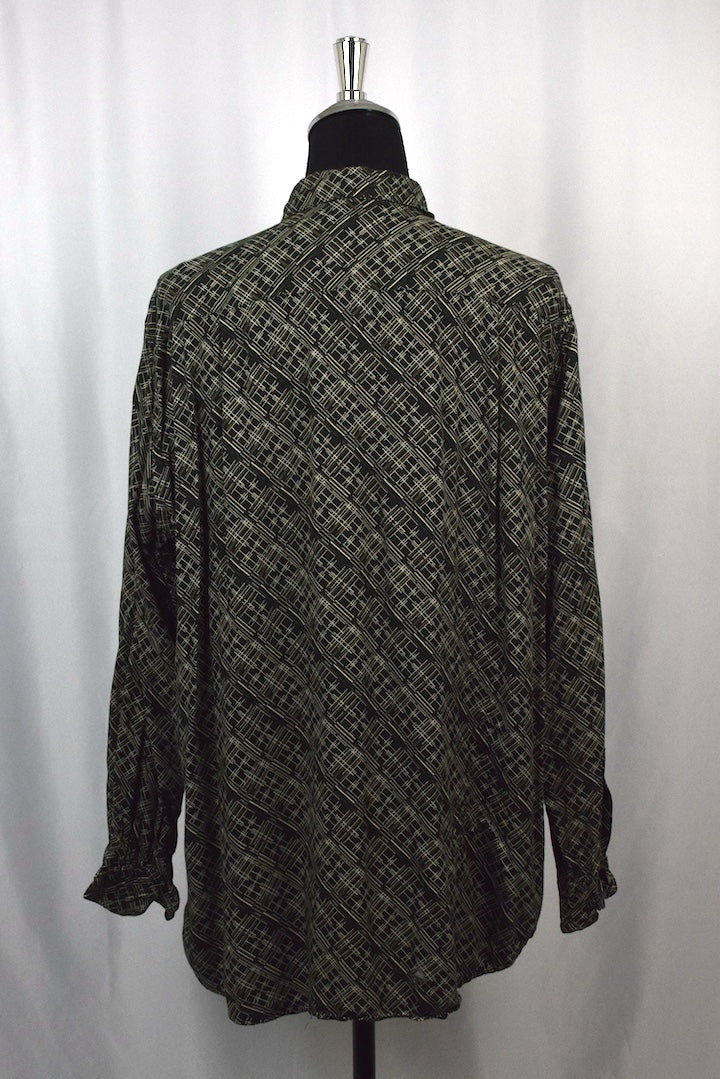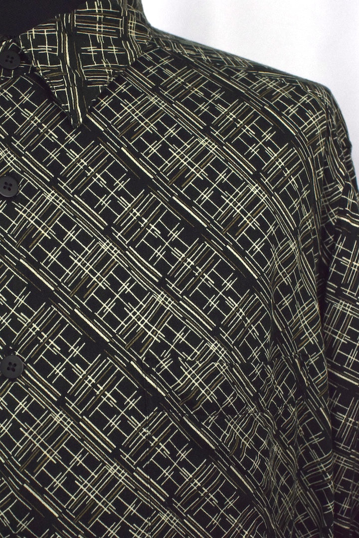 100% Rayon black shirt with an abstract diamond print