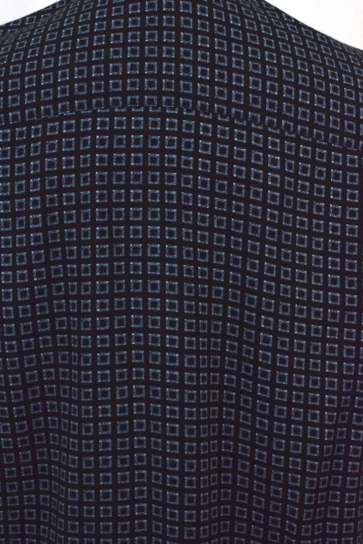 100% Rayon black shirt with a blue square print