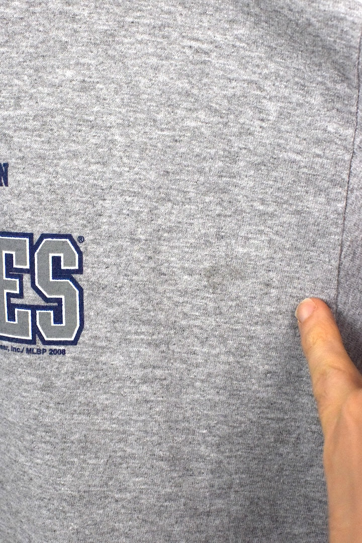Mottled grey longsleeve t-shirt with New York Yankees motif to front
