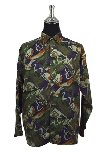 Abstract Print Silk Shirt