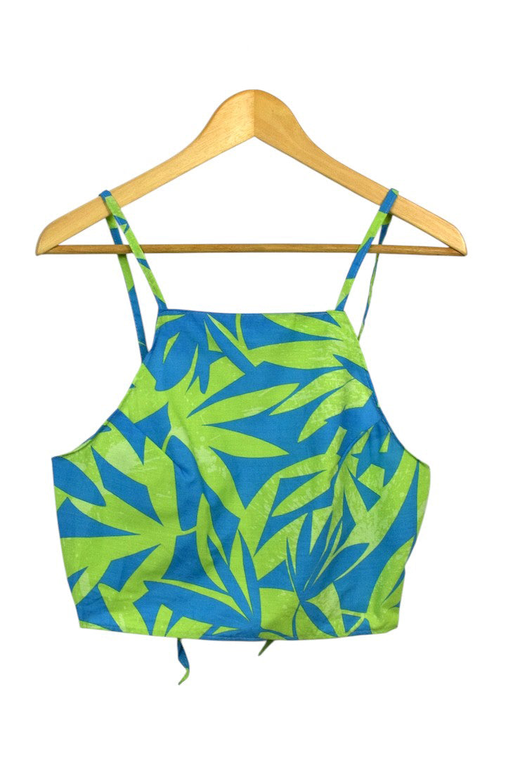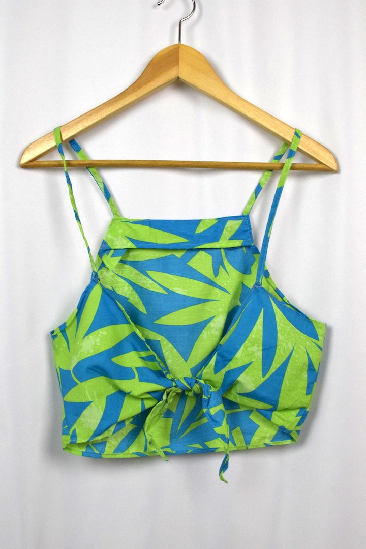 Bright blue and green Leaf-style print top