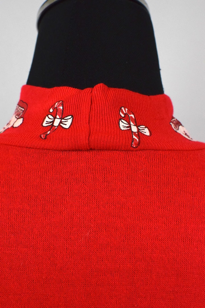 Red sweatshirt with chirstmas decorations, Gingerbread House, Christmas Bears motif to front