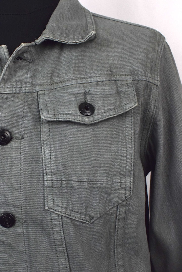 Grey denim jacket with natural denim fading