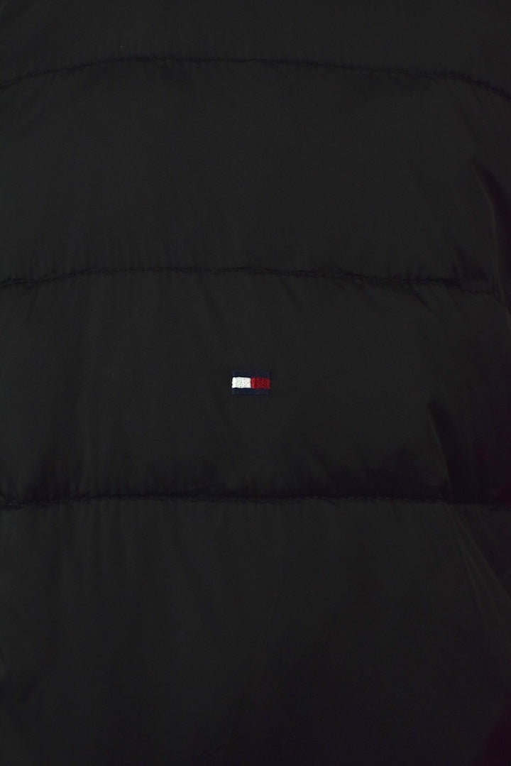 100% Nylon black full zip puffer jacket with an embroidered Tommy motif to chest