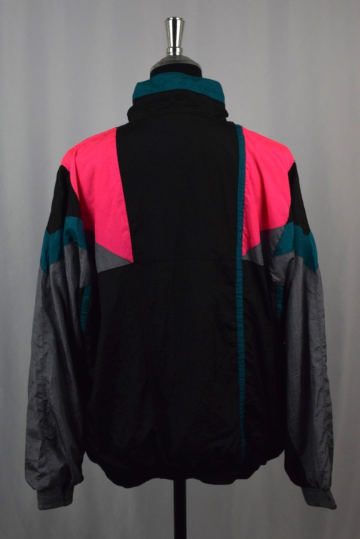 100% nylon black full zip spray jacket with multiple coloured panels