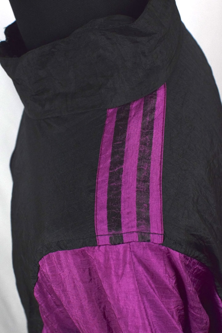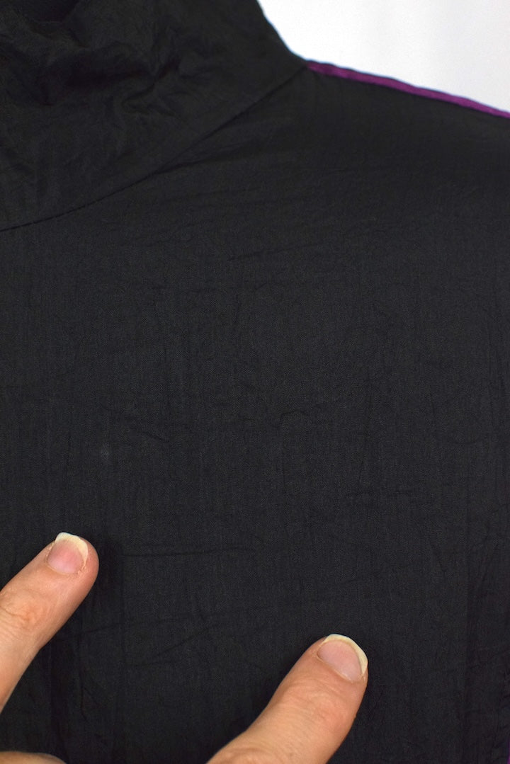 100% Nylon black full zip spray jacket with purple and blue panels