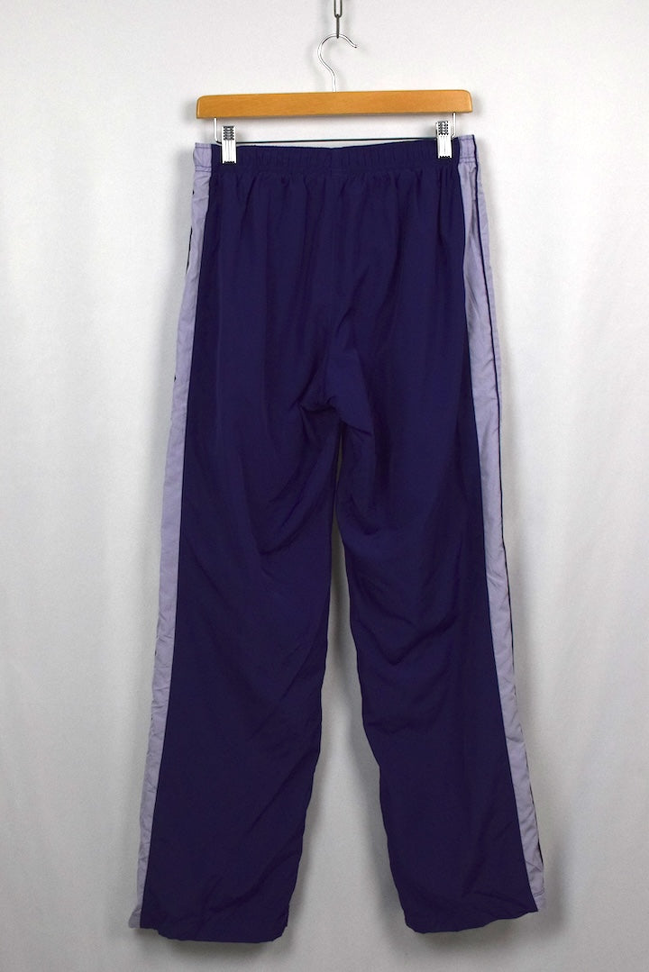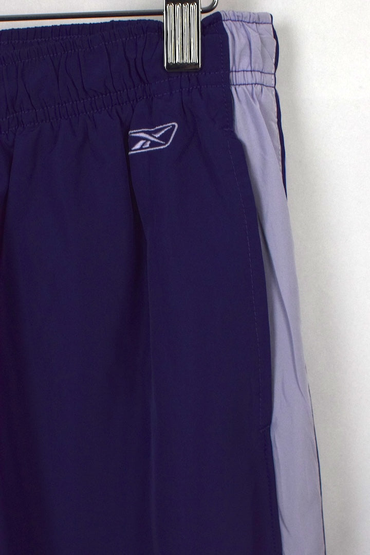 Reebok brand -100% Polyester purple track pants with light purple panels and purple trim