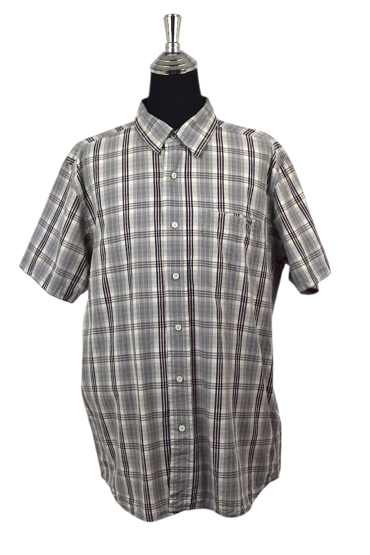 100% Cotton grey short sleeve shirt with a multicoloured checkered pattern
