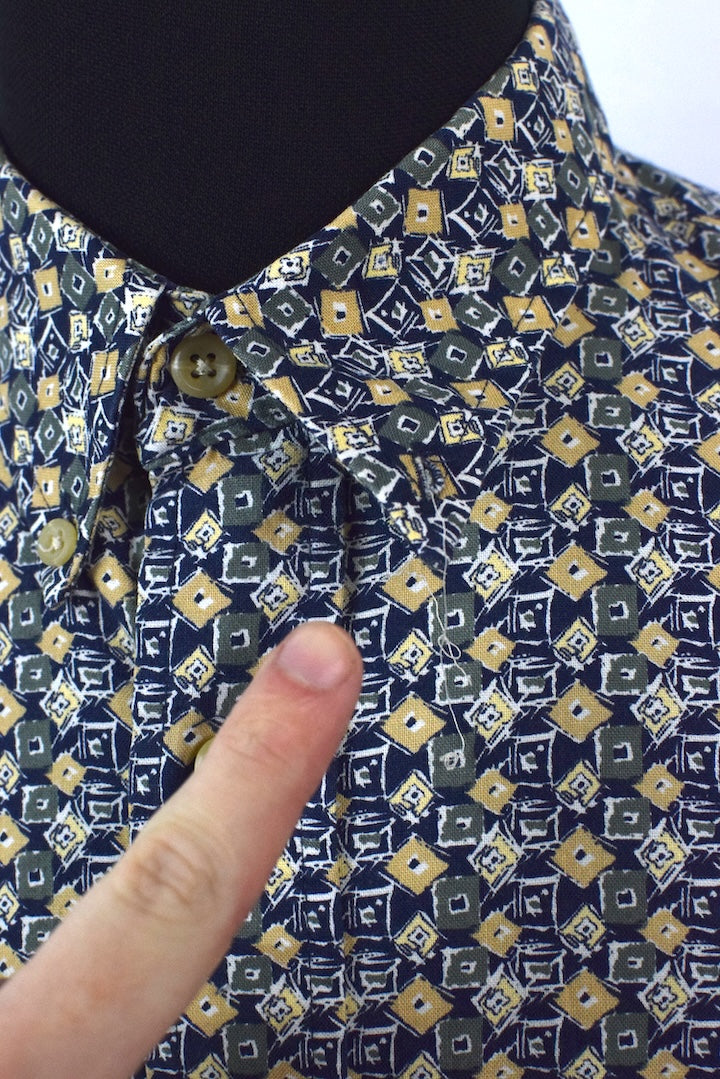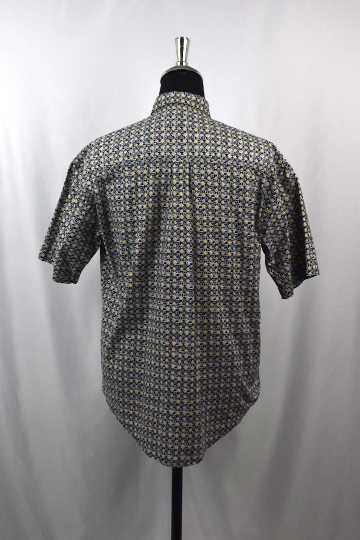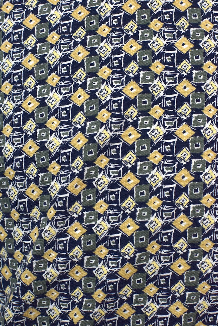 100% Cotton navy brand shirt with an abstract diamond and square print