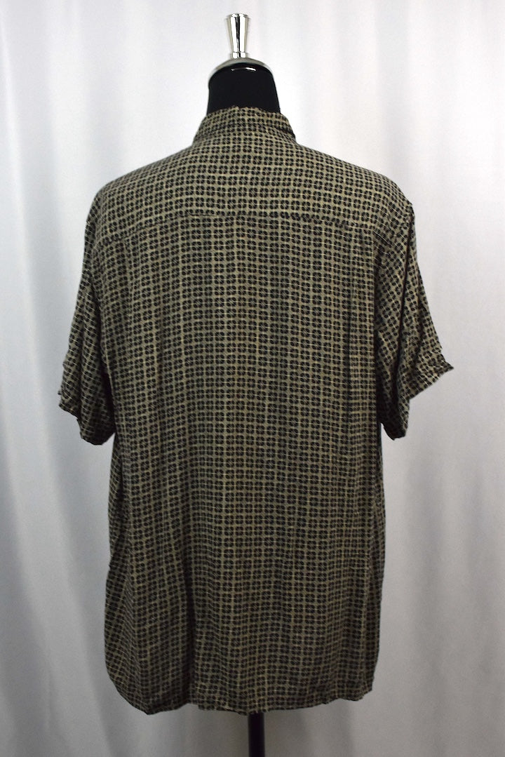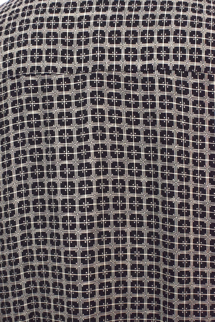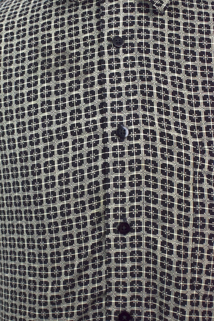 100% Rayon black shirt with a white square print