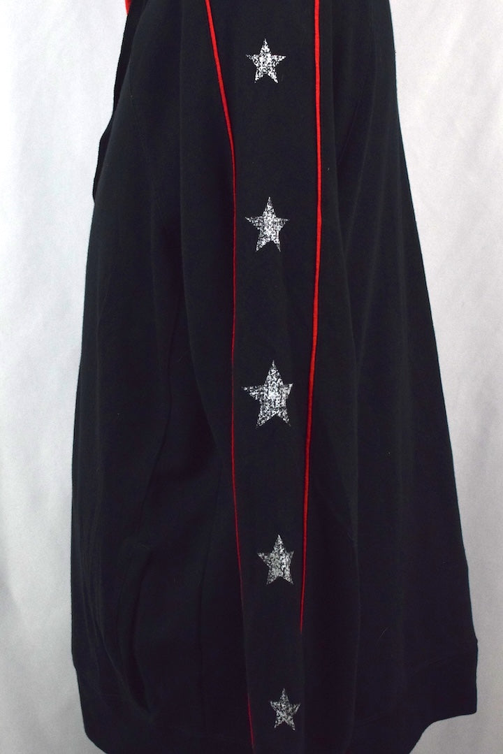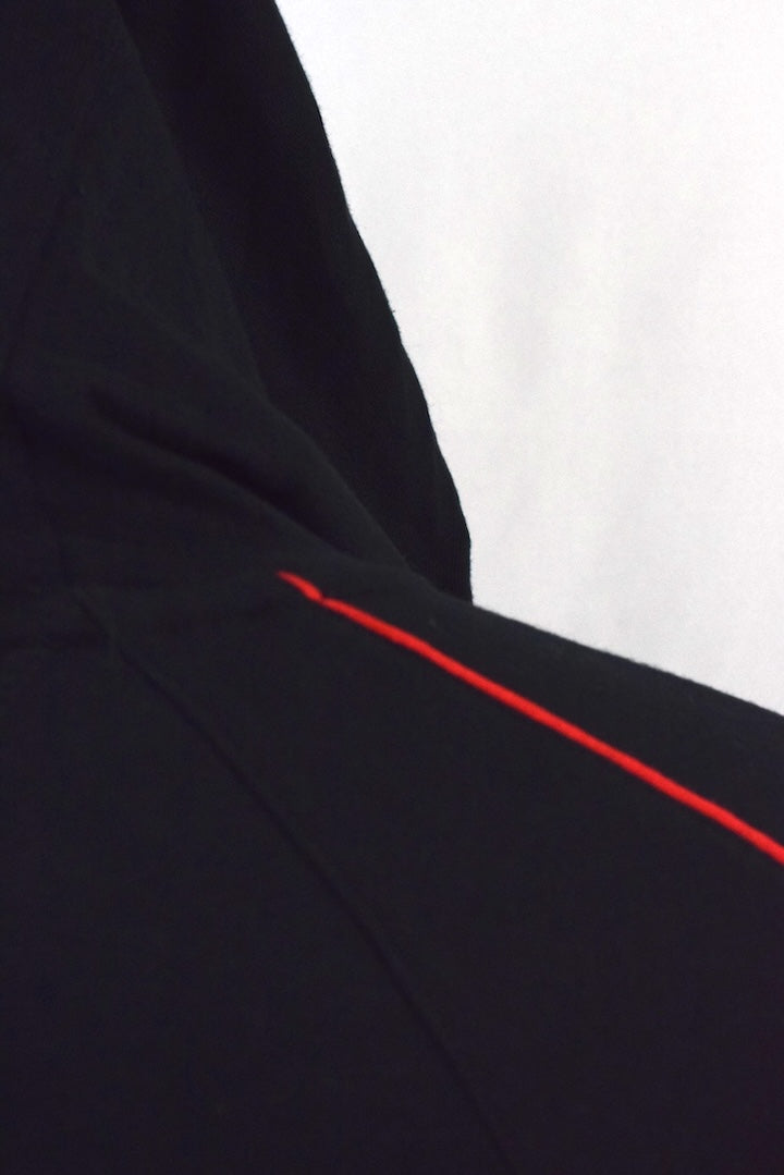 Black full zip hoodie with red trim and an embroidered Tommy motif to chest