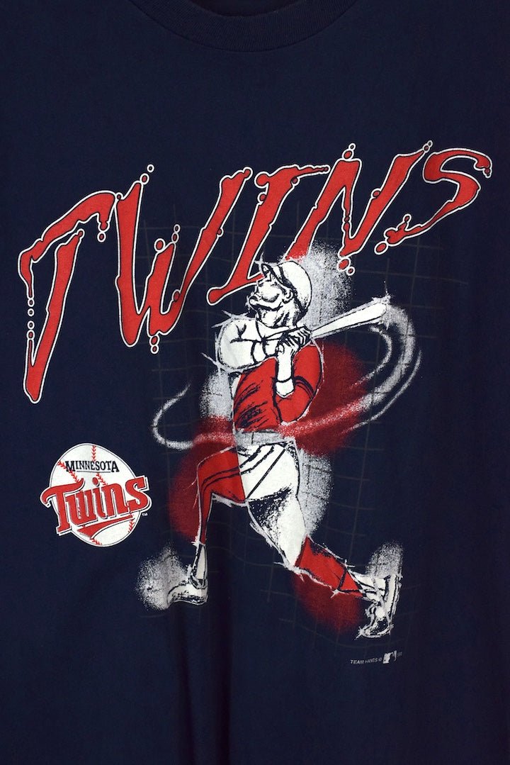 Loved navy t-shirt with Twins and sketch style baseball player motif to front