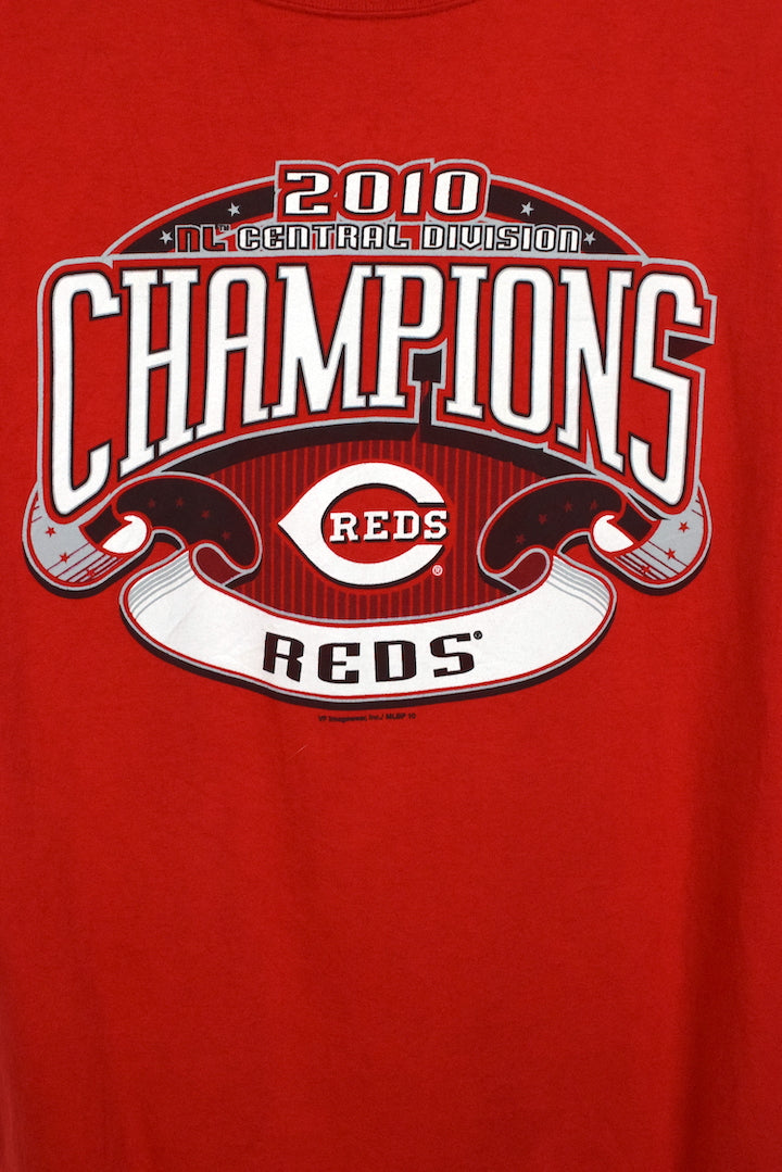 Red t-shirt with 2010 Central Champions Cincinnati Reds motif to front