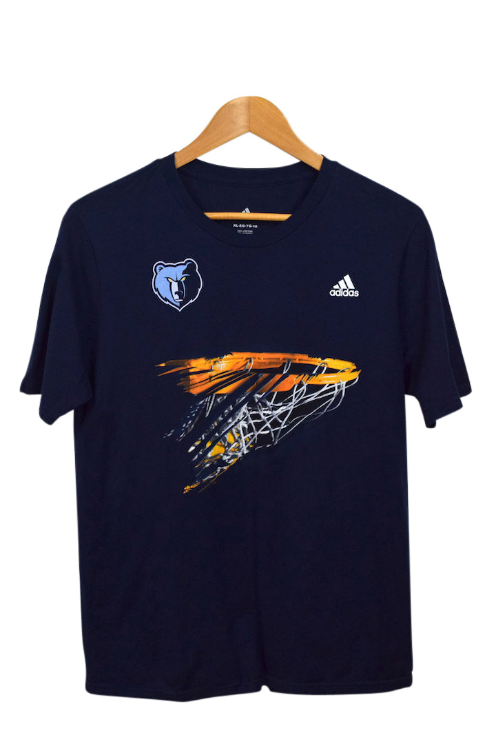 Navy t-shirt with Grizzlies, baketball net motif to front