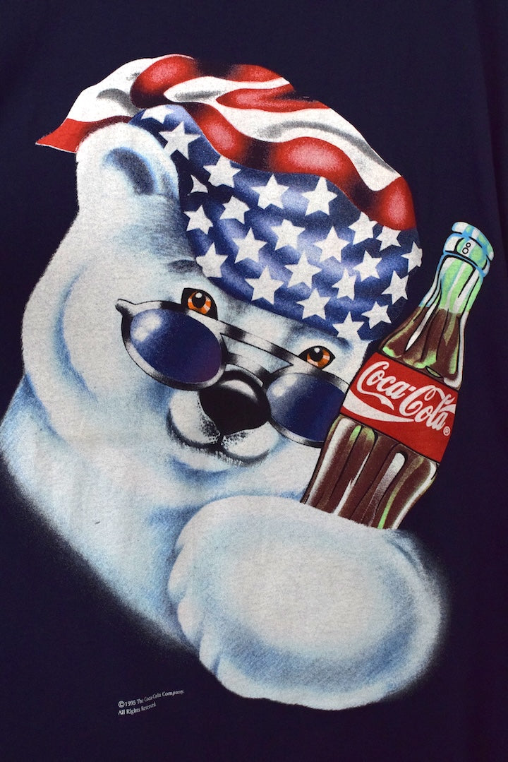 Navy t-shirt with Polar Bear wearing a USA bandada, Coke motif to front