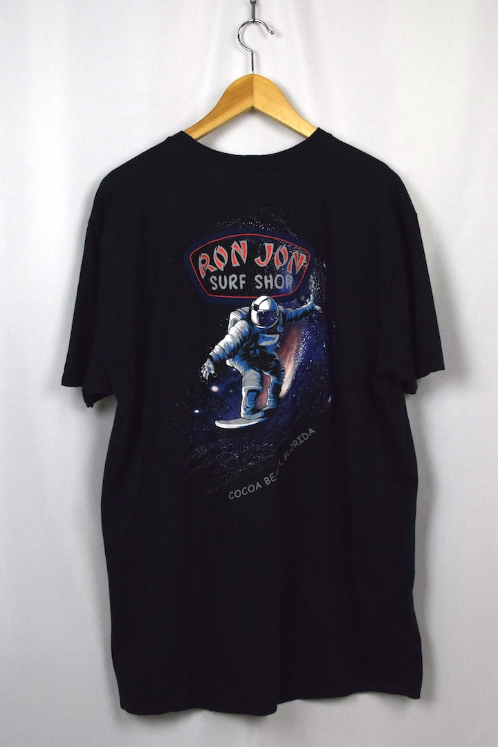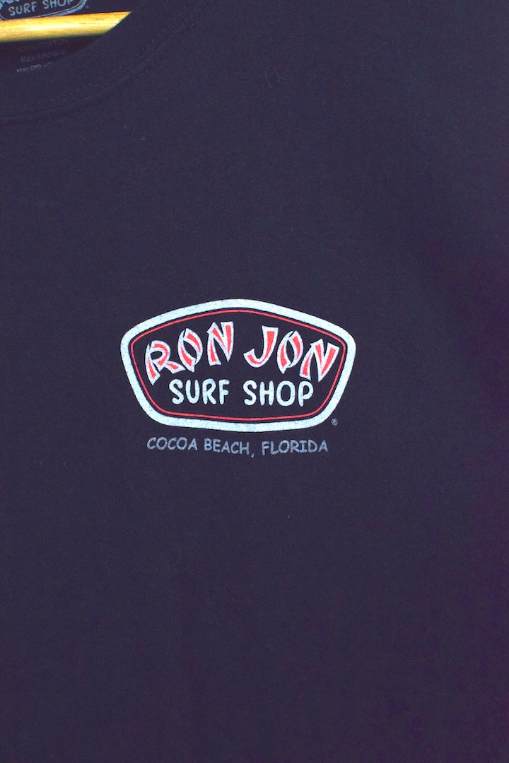 black t-shirt with Ron Jon motif to chest