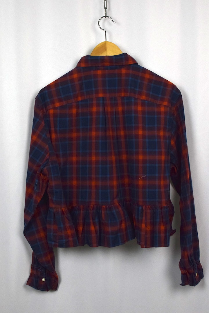 100% Cotton multicoloured chequered top with a frill hem