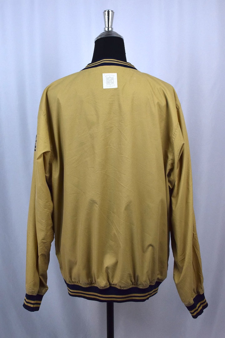 100% Polyester well loeved beige pullover with St. Louis Rams patch motif to front