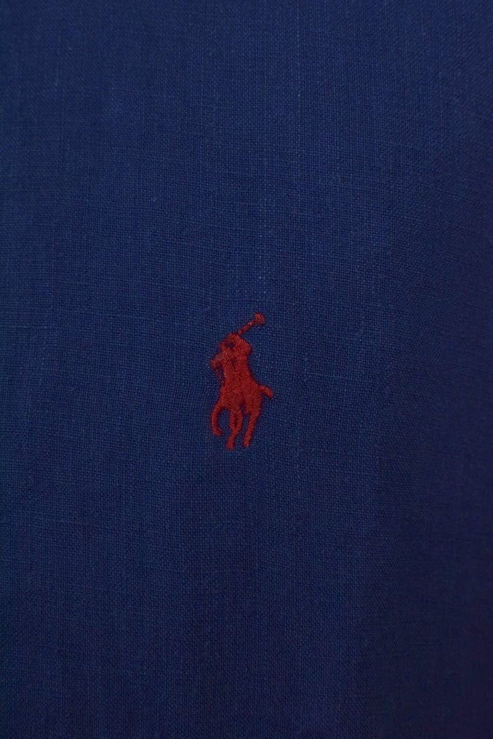 100% Linen faded blue shirt with a classic Ralph Lauren motif to chest