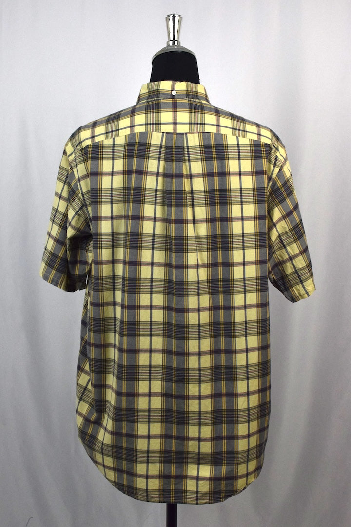 100% Cotton beige short sleeve shirt with a multicoloured checkered pattern