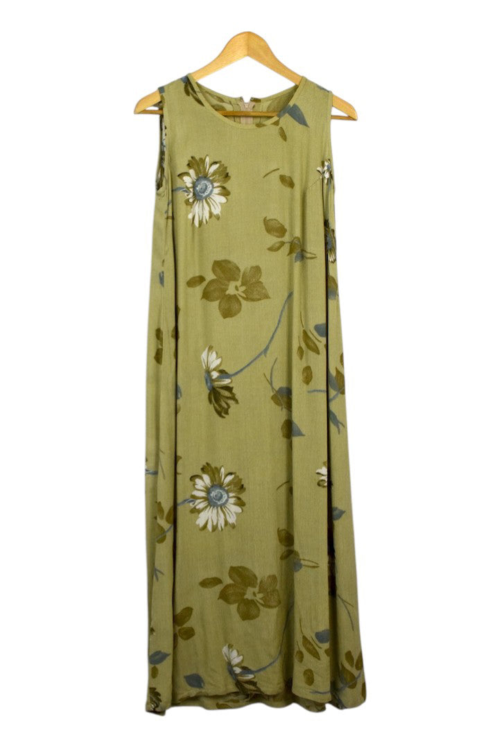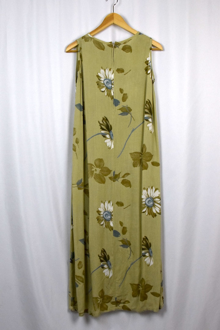 Light brown sleeveless dress with a floral print