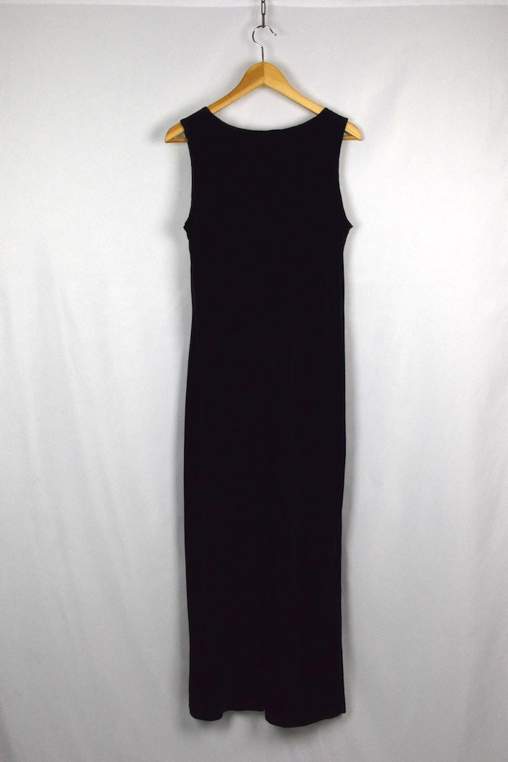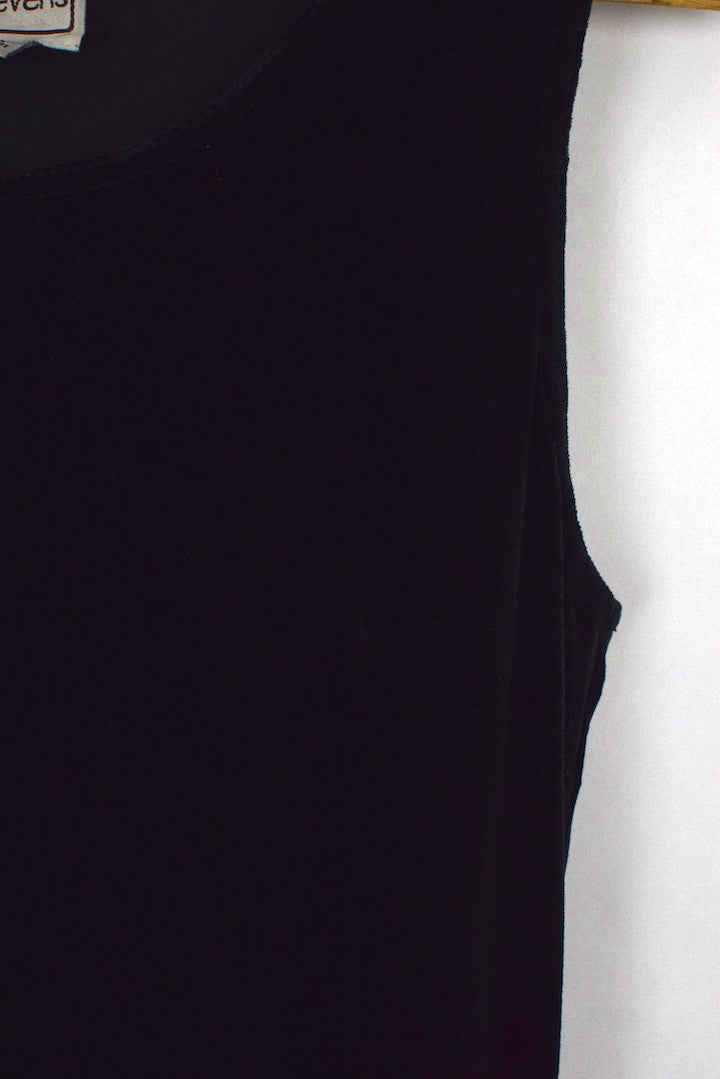 Black sleeveless velvet dress