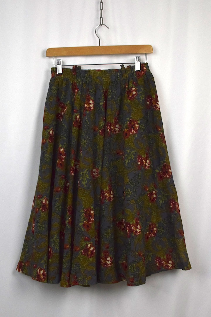No Tagged Size (Please check measurements for size. Measurements taken with item laying flat from seam to seam) Waist: 31-45 Length: 68cm