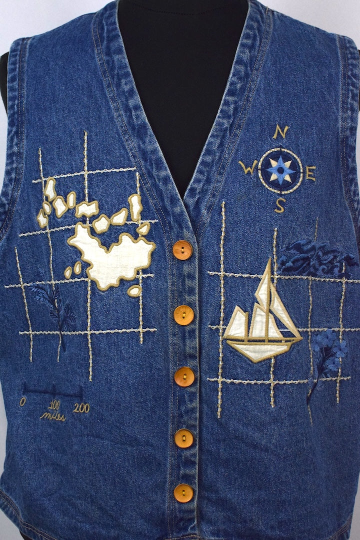 • Load image into Gallery viewer, Nautical Themed Denim Vest