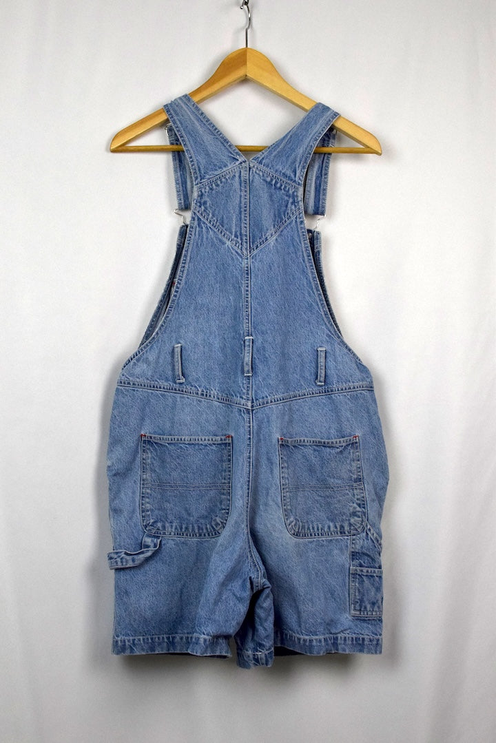 Short denim overalls with natural denim fading