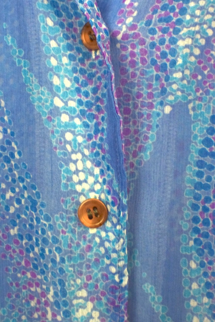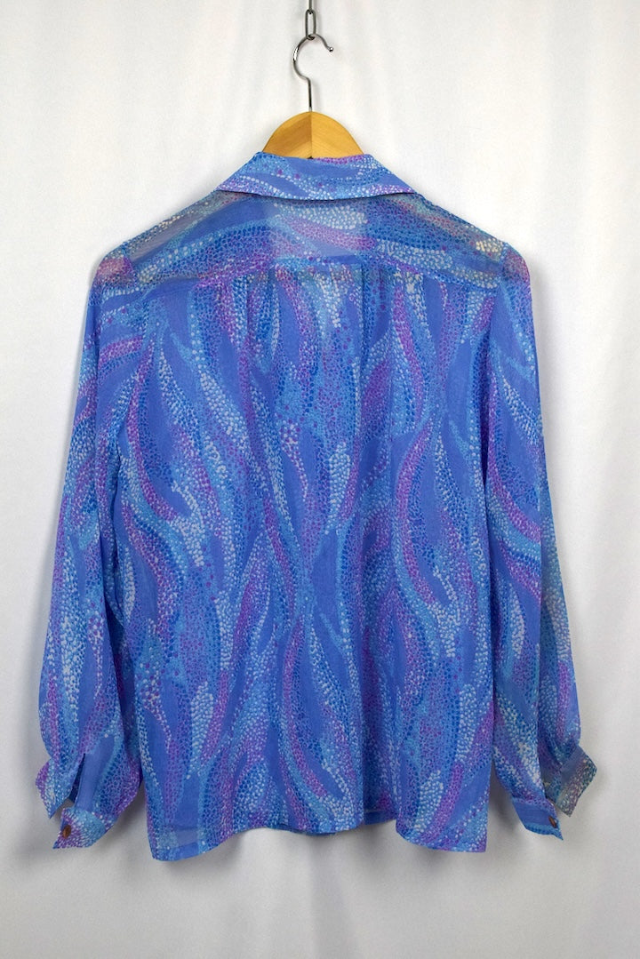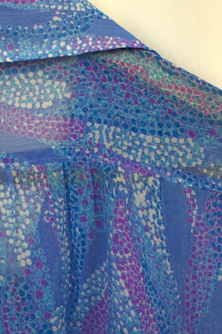 Blue long sleeve blouse with a dotted abstract leaf print