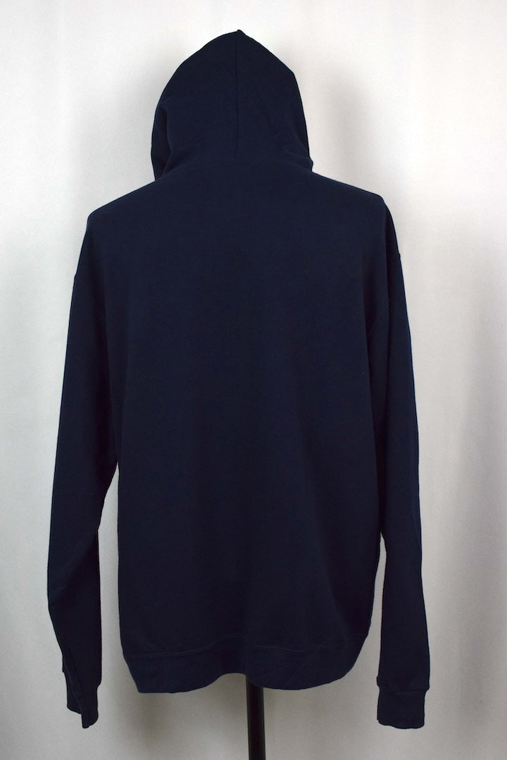 Navy hoodie with Patroits motif to front
