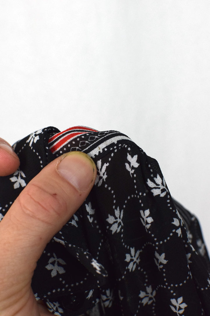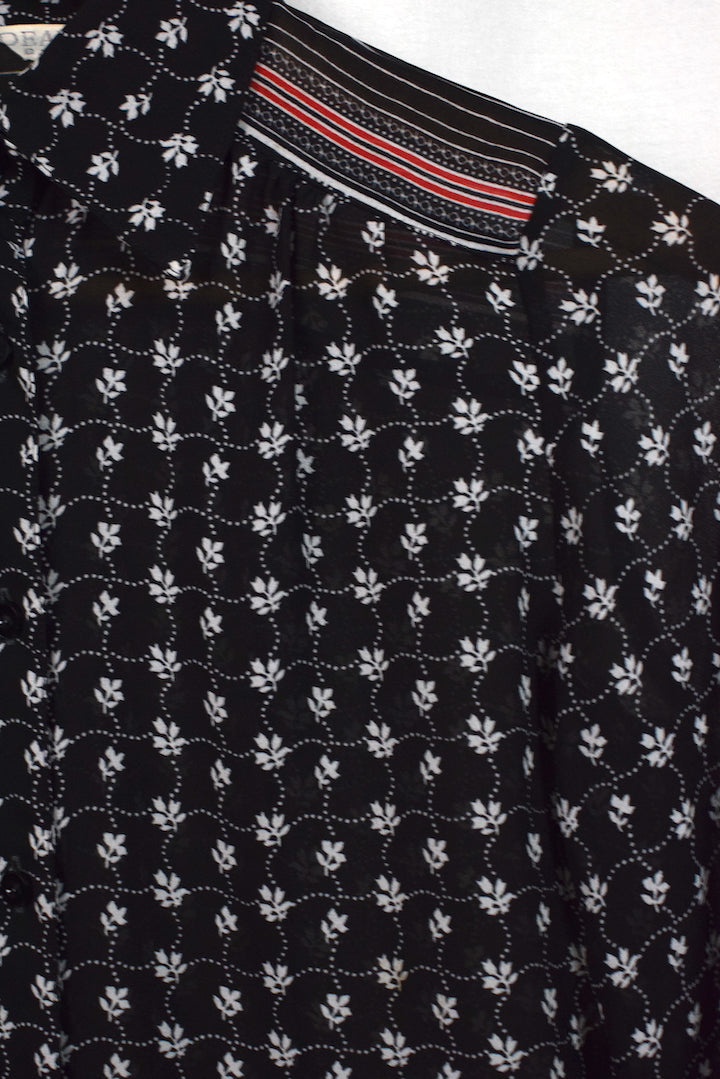 Black blouse with a white sqaure, flower print