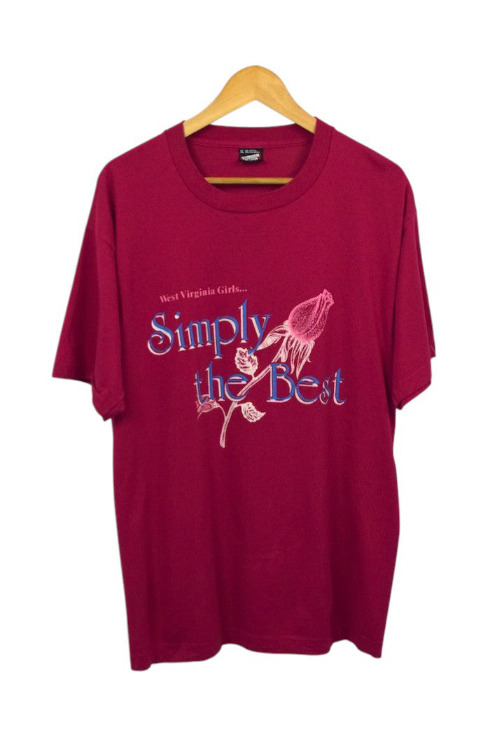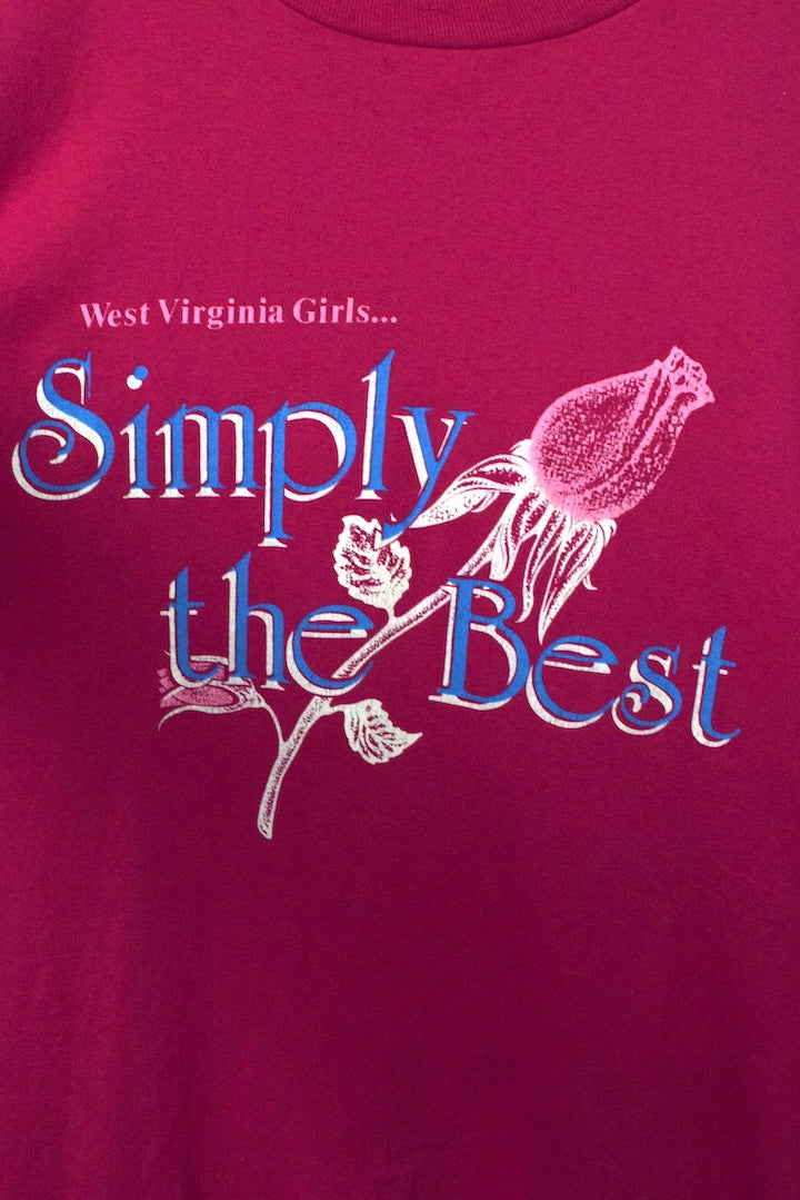 Pink t-shirt with West Virgina Girls, Simply The Best and rose motif to front