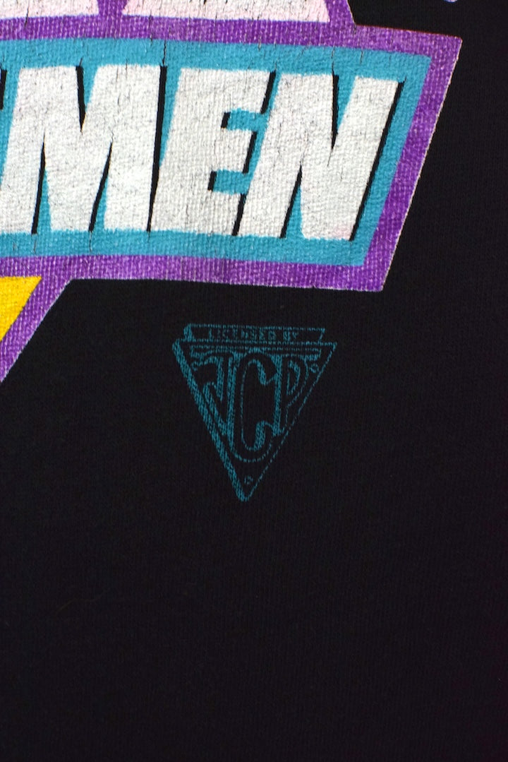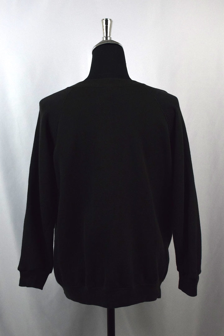 Well-loved black sweatshirt with 4 horsemen motif to front, JCP (Jim Crockett Promotions) copyright to bottom of motif