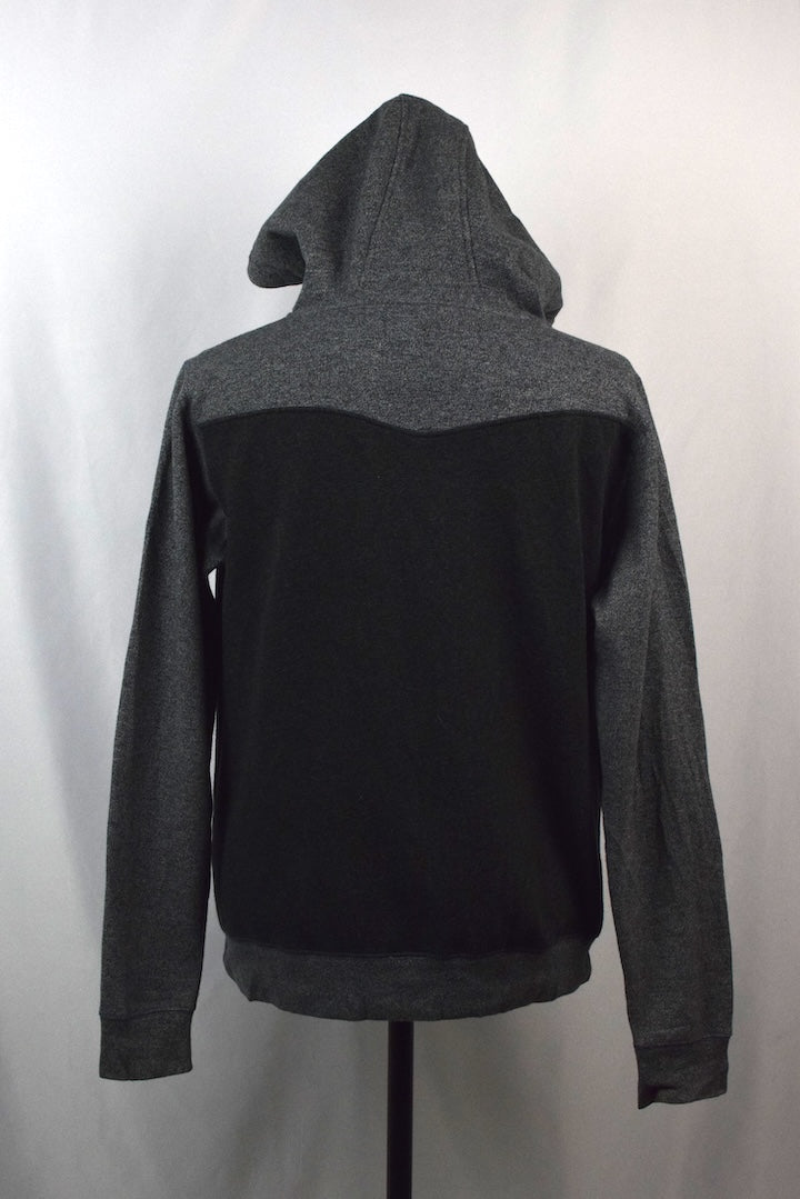 Mottled grey full zip hoodie with mottled dark grey panels