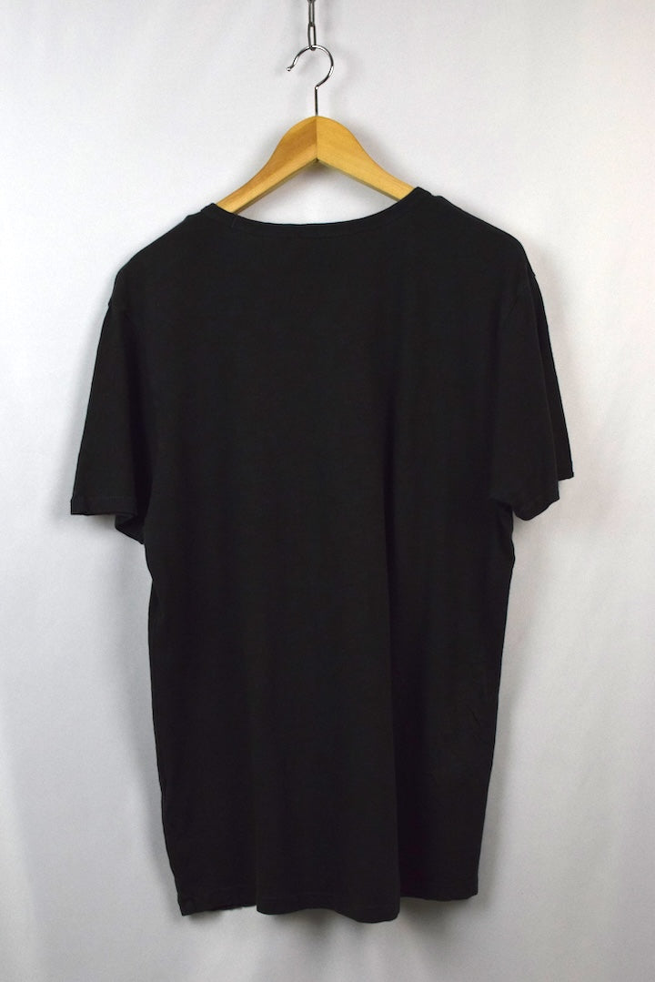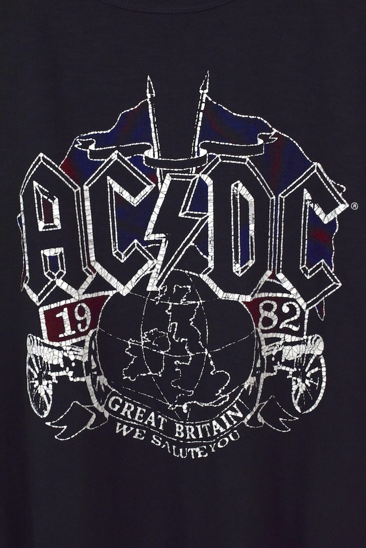 Dark grey t-shirt with AC DC, Union Jack, Great Britian We Salute You motif to front