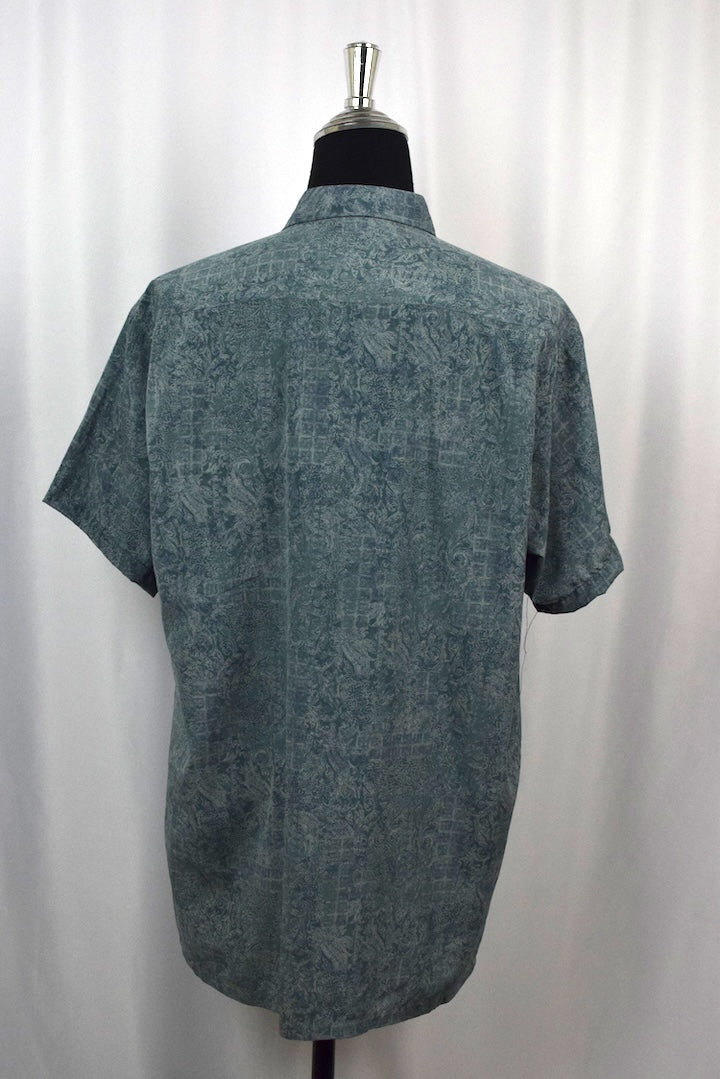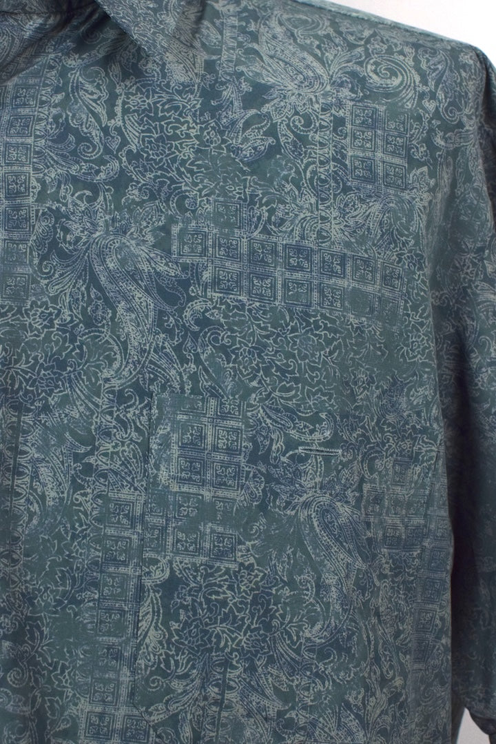 Green short sleeve shirt with an abstract print