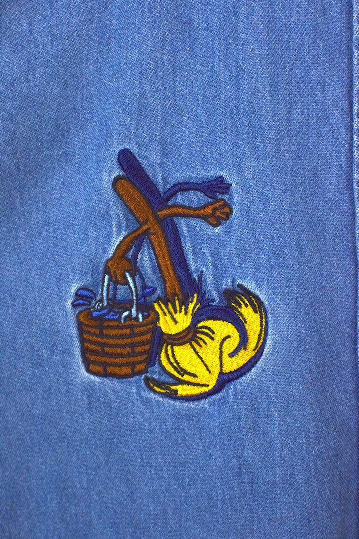 Embroidered walking broomstick, Sorcerer Mickey Mouse motif to front