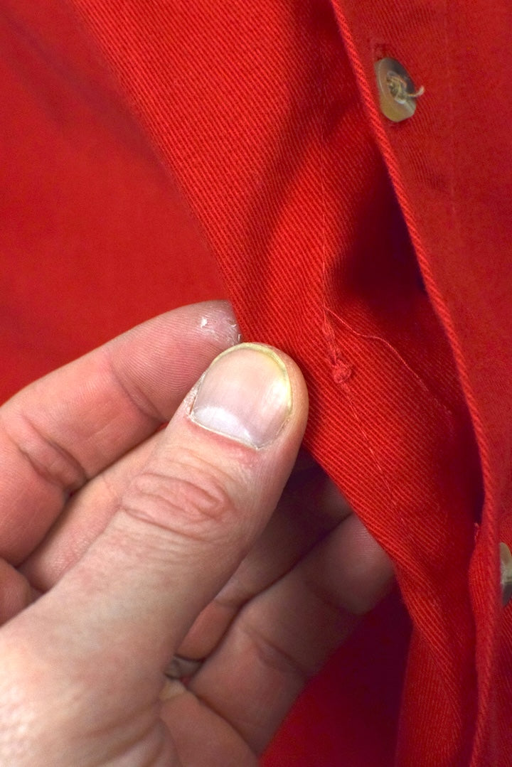 Repair stitching to front right near 2nd last button cant not be seen when shirt is done up (please see photo)