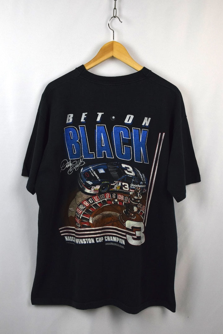 Well worn black t-shirt with Dale Earnhardt motif to front