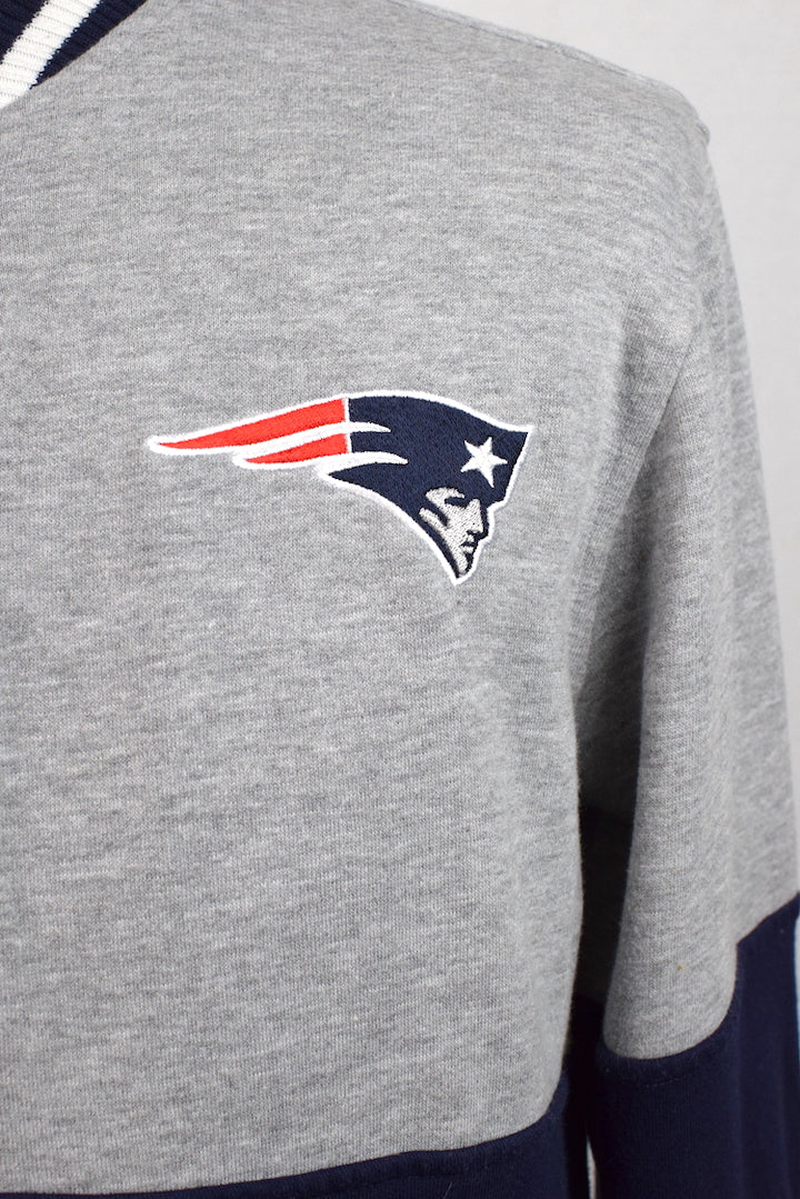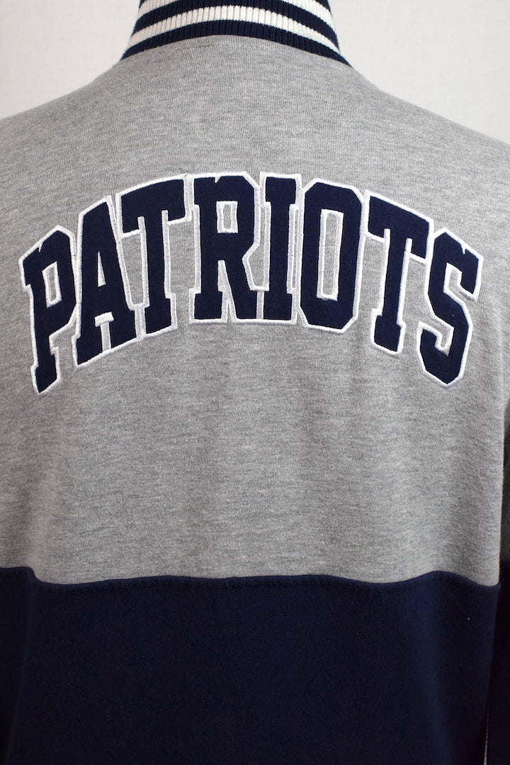 Sweatshirt style cotton/polyester blend mottled grey jacket with blue panels