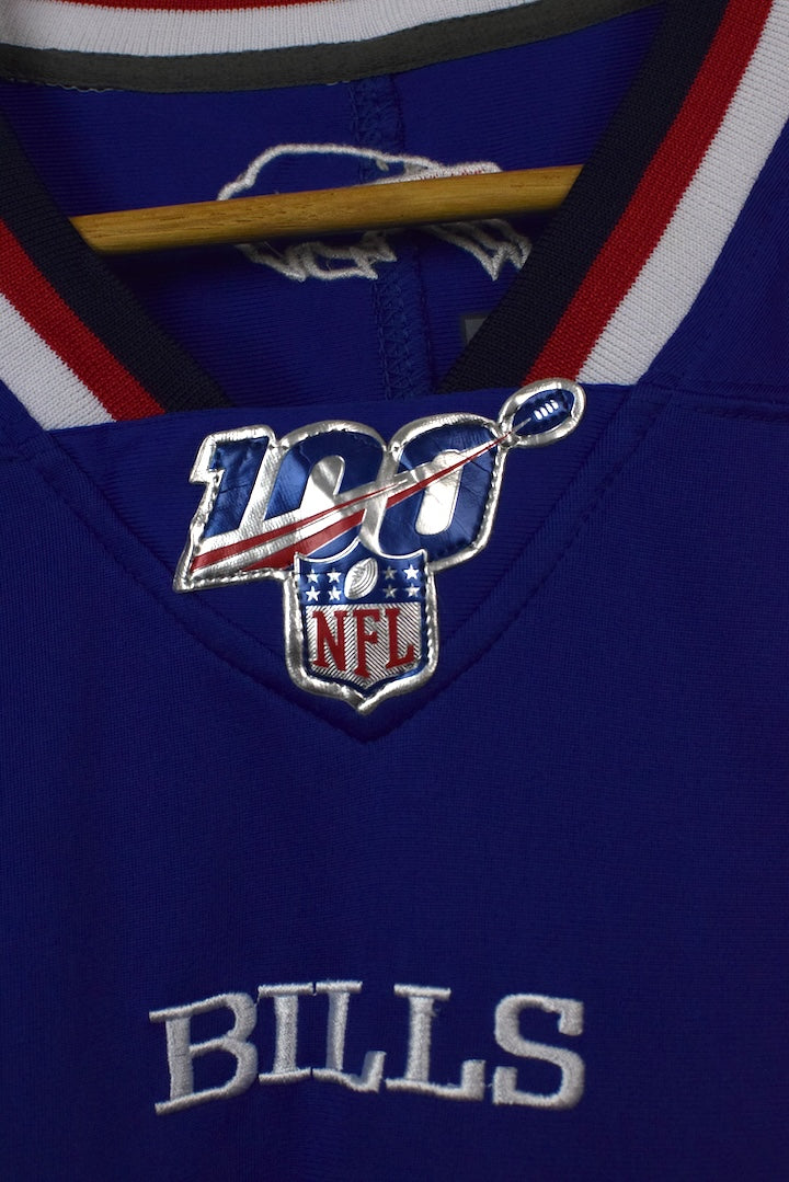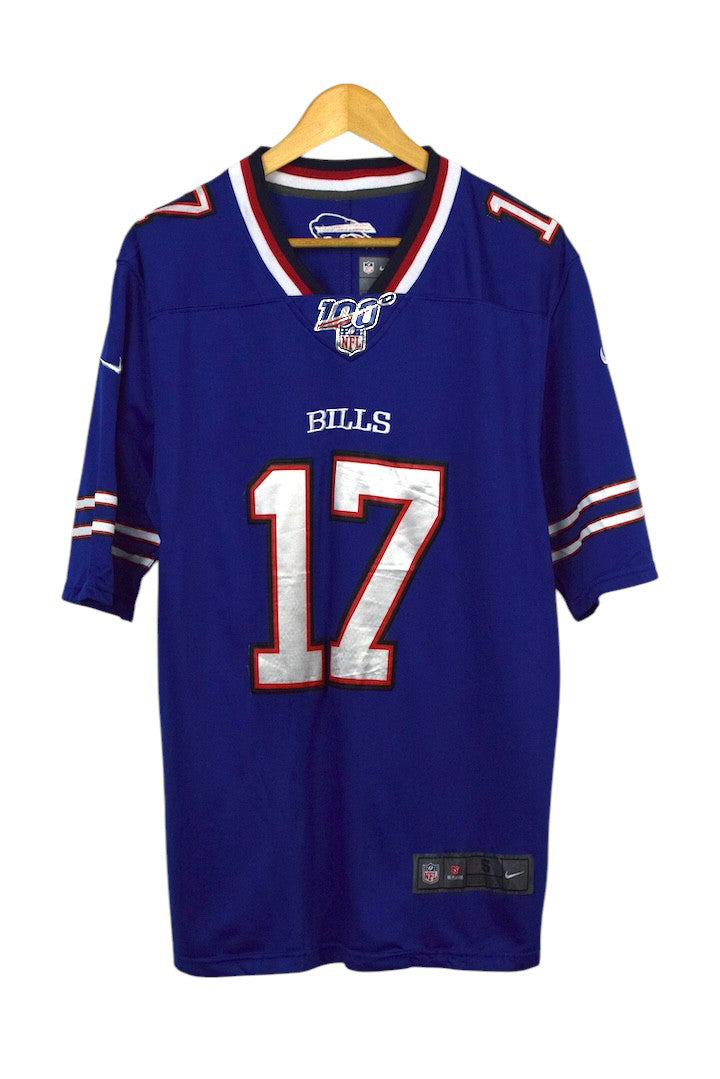 Blue jersey with 100 NFL, Bills, 17 motif to front